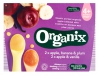 "ORGANIX" ekologiškas obuolių, vanilės tyrelė 2x100g + bananų, slyvų tyrelė 2x100g, kūdikiams nuo 4 mėn. amžiaus, neto masė 4x100gSkirta ne mažesniems kaip 4 mėn. amžiaus kūdikiams. Visus produktus skirtus jaunesniems kaip 6 mėn. kūdikiams galima vartoti tik gydytojui pediatrui rekomendavus. BE GLITIMO. BE PIENO.Sudėtis – ekologiški ingredientai: obuolių tyrė 99%, braškių tyrė iki1%, citrinos rūgštis <0,001% (antioksidantas).Maistinė vertė 100g: energetinė vertė 240kJ/57kcal, baltymų 0,4g, angliavandenių 12,4g (iš kurių cukrų 11,3g), riebalų 0,6g (iš kurių sočiųjų riebalų rūgščių <0,001g), skaidulinių medžiagų 2,1g, natrio <0,001g.Sudėtis – ekologiški ingredientai: obuolių tyrė 72%, bananų tyrė 14%, citrinos rūgštis <0,001% (antioksidantas).Maistinė vertė 100g: energetinė vertė 314kJ/74kcal, baltymų 0,8g, angliavandenių 16,5g (iš kurių cukrų 15,2g), riebalų 0,5g (iš kurių sočiųjų riebalų rūgščių <0,001g), skaidulinių medžiagų 4,4g, natrio <0,001g.Tinka vegetarams.