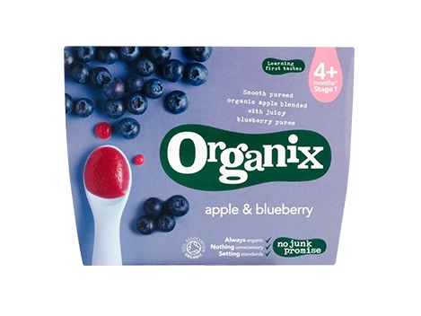ORGANIX ekologiška obuolių ir mėlynių tyrelė kūdikiams nuo 4 mėn, 4x100g