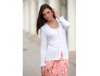 Itin prašmatnus nerūdijančio Pagrindiniai su nupjautais trumpomis rankovėmis ir plačiu apvaliu kaklu. Pažangiausios gėlių spausdinti ant kaklo. Tinka puikus su...