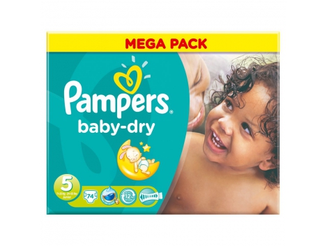PAMPERS Baby-dry sauskelnės 5 dydis (11-25kg), MEGA pack 74 vnt