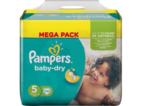 PAMPERS Baby-dry sauskelnės 5 dydis (11-25kg), MEGA pack 74 vnt