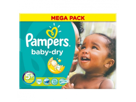 PAMPERS Baby-dry sauskelnės 5+ dydis (13-27kg), MEGA pack 70 vnt