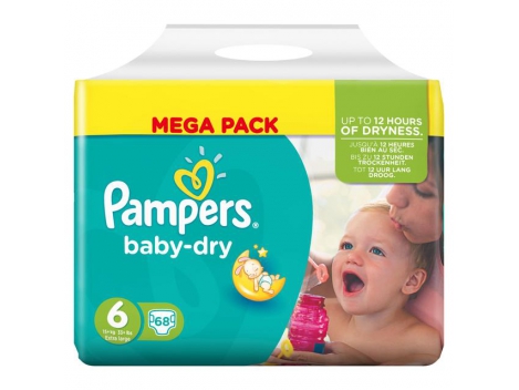 PAMPERS Baby-dry sauskelnės 6 dydis (15+ kg), MEGA pack 68 vnt