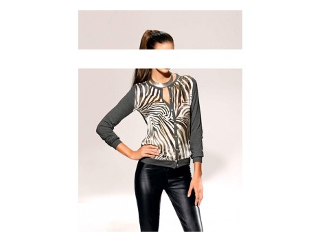 Top modelis jaustis gerai! Leoprint Allover įspūdingai pastatytas. Cardigan su apvaliu kaklu, nuslėpė przystawkę Kišenė su grosgrain stiprinti. Ilgis apytikriai...