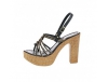 Išskirtinai gražus dizaineris modelis ir absoliutus akį! Bauda diržas su aukso blizgios detales glamonėti subtilus koją. Viršutinė pagamintas iš aukštos kokybės sintetinių įspaustu. Pamušalu, sintetinės interjeras. Reguliuojamas kulno lydeka su šoniniu sagtimi. Dilimui atsparus sintetinis padas. Kulno ir platforma kamštienos optikos. Kulno aukštis Rodoma apytikriai 11,5 cm, pleišto aukštis 3,5 cm.