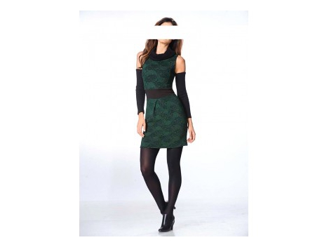 Atstovas ant linijos. Sexy suknelė su dekoratyviniais intarpais iš sintetinės odos ant rankovių ir pečių. Montuojama sumažinti su plonas siluetas. Langer mading...