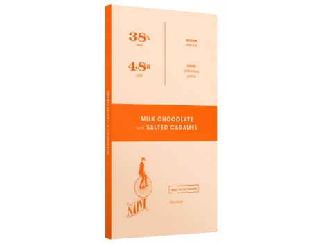 Pieninis šokoladas SU KARAMELE 38%, Naive, 70g Kiekviena šokolado pakuotė yra su originaliu gamintojo parašu! Aukščiausios kokybės ingredientai meistriškose virtuozo rankose Jums sukuria nuostabų šokoladą. Mėgaukitės! Chocolate Naive šokoladą gamina iš kakavos pupelių, taigi visas gamybos ciklas įvyksta „vienuose namuose“. Tokių gamintojų visame pasaulyje yra tik apie 150. Chocolate Naive vadovaujasi dviem principais: pirma, Chocolate Naive dirba tik su aukščiausios kokybės ingredientais. Antra, Chocolate Naive siekia preciziškumo ir meistriškai atskleisti konkretaus regiono kakavos pupelių charakteristikas – Grenadoje, Madagaskare, Peru, Vietname, Venesueloje ar Tanzanijoje užaugintų kakavos pupelių skonius ir aromatus. Grynas kakavos sviestas pirmiausia maišomas su pienu ir cukranendrių cukrumi, tuomet šokolado pasta karamelizuojama, švelniai paskrudinant cukrų. Galiausiai įmaišomas žiupsnelis jūros druskos ir vanilė: taip suformuojamas išskirtinis šokolado skonis. Sudėtis: cukranendrių cukrus, tyras kakavos cukrus, tyras kakavos sviestas, nugriebtas ir nenugriebtas pienas, kakavos pupelės, išrūgos, jūros druska, vanilės ankštys, ne-gm sojos lecitinas. Gali būti riešutų likučių. Kakavos min. 38%.