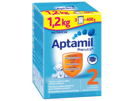 Pieno mišinys APTAMIL 2 su PRONUTRA+, kūdikiams nuo 6mėn, neto masė 1,2 kg