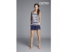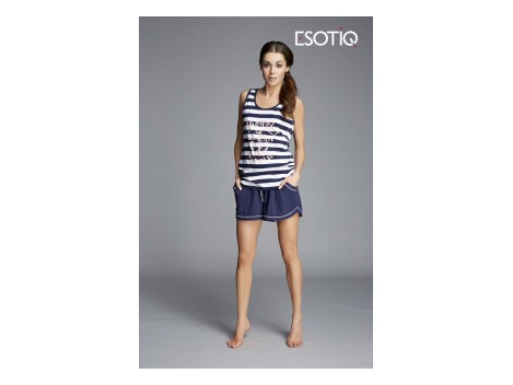 Idealna na lato, dwuczęściowa piżamka w modne, marynarskie paski. Koszulka na szerszych ramiączkach, z mocno zaakcentowaną talią, świetnie leży. Miękka bawełna rozpieszcza skórę. Dół wykończony półkoliście. Z przodu pasujący do całości nadruk. W zestawie granatowe, krótkie spodnie z dwoma kieszonkami po bokach. Renomowana marka Esotiq polecana przez Joannę Krupę. Skład: t-shirt 95% bawełna, 5% elastan. Spodenki 100% bawełna. Wskazówki: Sugerowane pranie w temp. max. 30 stop., prasować z max. temp. 110 stop., nie wirować, nie suszyć w suszarce mechanicznej.    RozmiarObwód w biuścieObwód w biodrachDługość koszulkiS80-86 cm 88-100 cm 60 cmM86-92 cm 94-106 cm 62 cmL92-98 cm 100-112 cm 66 cmXL98-104 cm  106-118 cm 66 cm
