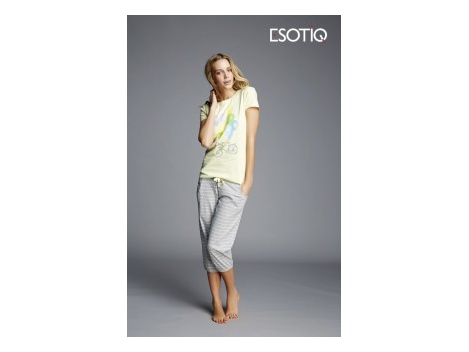 Słodka, dwuczęściowa piżamka, idealna na lato. T-shirt z uroczym nadrukiem. Kolorowe balony ozdobiono delikatnym brokatem i maleńkimi, satynowymi kokardkami. Żółte tło wygląda delikatnie i kobieco. Fason lekko taliowany, dobrze leży na sylwetce. W zestawie spodnie do okolic kolan, na gumce w pasie. Spodnie posiadają dwie kieszonki umieszczone na biodrach oraz drobny prążek, który swym kolorem nawiązuje do barwy t-shirtu.RozmiarDługość t-shirtuObwód w biuścieDługość spodniObwód bioderS62 cm80-86 cm65 cm88-100 cmM63 cm86-92 cm70 cm94-106 cmL64 cm92-98 cm72 cm100-112 cmXL67 cm98-104 cm72 cm106-118 cm