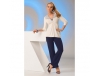 Elegancka, dwuczęściowa piżama z najnowszej kolekcji by Donna. Z jasną bluzką w kolorze słodkiej, białej czekolady. Dopełniona kwiecistym nadrukiem, który efektownie zdobi dekolt. Z rękawem o długości 3/4. Uszyta z miękkiej i elastycznej dzianiny, bardzo przyjemnej w dotyku. W komplecie otrzymasz granatowe, długie spodnie na gumce. Propozycja godna polecenia.Produkt pakowany jest w urocze pudełeczko, dzięki czemu świetnie sprawdzi się również jako prezent. Polski producent, najwyższa jakość wykonania. Skład: 95% wiskoza, 5% elastan.RozmiarWzrostObwód w biuścieObwód bioderDługość koszulkiDługość spodniS158-16486-9088-926192M158-16490-9492-966292L176-18294-9896-1006392XL176-18298-102100-1046493XXL176-182102-106104-1086594XXXL176-182106-110108-1126694XXXXL176-182110-114112-1166794Tabela wyrażona w cm.