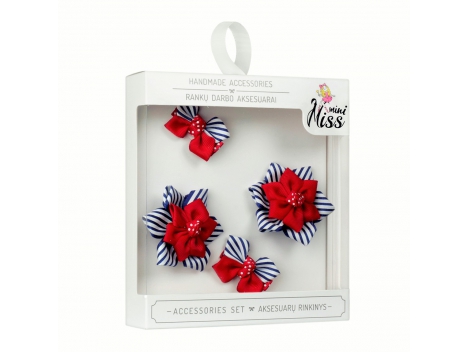 Plaukų aksesuarų rinkinys RAUDONA IR JUODA Mini Miss, 4 dalių