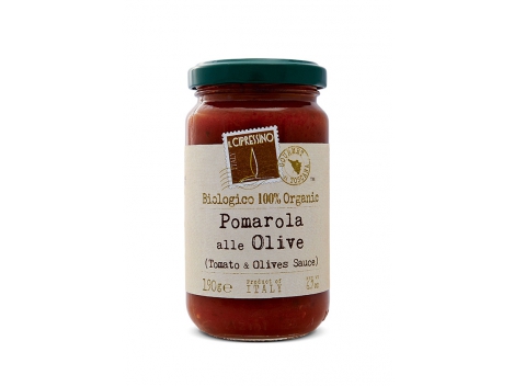 POMIDORŲ PADAŽAS SU ALYVUOGĖMIS IL Cipressino, 190g “Il Cipressino” – tai iš Toskanos regiono atkeliavę ekologiški ir gurmaniški produktai, išsaugoję toskanietiškas skonio ir receptų tradicijas.Galite rinktis iš įvairių rūšių “Il Cipressino” padažų, makaronų ir aliejų. Sudedamosios dalys: pomidorai 90%, alyvuogės 7%, ypač tyras alyvuogių aliejus, petražolės, jūros druska, česnakai, raudonėlis.Maistinė vertė 100g: energinė vertė 285kJ/69kcal, riebalų 4,6g, iš kurių riebalų rūgščių 0,6g, anglavandenių 4,0g, iš kurių cukraus 3,4g, baltymų 1,4g, natrio pėdsakai 0,96g, skaidulų 2,9g.