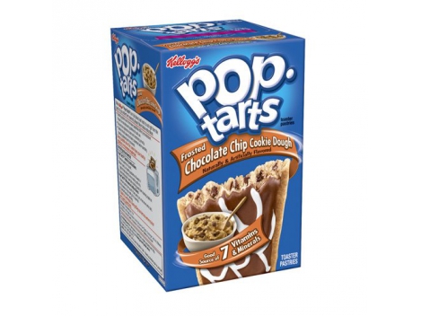 POP TARTS SU ŠOKOLADINIAIS DRIBSNIAIS 400gSudėtis: prisotinti miltai ( kviečių miltai, niacinas, sumažinta geležies, vit B1 [tiamino mononitratas], vit B2 [riboflavinas], folio rūgštis), cukrus, sojos pupelių ir palmių aliejus (su TBHQ šviežumui išlaikyti), daug fruktozės turintis kukurūzų sirupas, dekstrozė, kukurūzų sirupas, pusiau saldūs šokoladiniai dribsniai (cukrus, šokoladas, dekstrozė, kakavos sviestas, sojos lecitinas, pieno riebalai, vanilė), mažiau kaip 2% krekerių miltai, druska, modifikuotas kukurūzų krakmolas, kalcio karbonatas, tešlos kildymo medžiaga (kepimo soda, natrio aliuminio fosfatas), dažiklis karamelė, neriebus pienas, želatina, mono- ir digliceridai, natrio sterol laktatas, kukurūzų krakmolas, riebiųjų rūgščių mono- ir digliceridų mono- ir diacetilvyno rūgšties esteriai, natūralūs ir pridėtiniai skoniai, ksantano guma, pridėtinis dažiklis, geltona 6 lake, mėlyna 2 lake, sojos lecitinas, raudona 40 lake, geltona 5 lake, vitaminas A palmitatas, niacinamidas, kiaušinių baltymai, geležis, išrūgos, Vitaminas B6, Vitaminas B2, Vitaminas B1.Sudėtyje yra kviečių, pieno, kiaušinių ir sojos. Maistinė vertė porcijoje: energinė vertė 190 kcal, riebalų 5g, iš jų sočiųjų riebalų 2g, polinesočiųjų riebalų 1,5g, mononesočiųjų riebalų 1g, cholesterolio 0mg, natrio 190mg, angliavandenių 35 g, iš kurių cukraus 18 g, baltymų 2g. Pašildykite skrudintuvėje: 1, Išimkite iš maišelio. 2, Įdėkite į skrudintuvą ir nustatę mažiausią temperatūrą pašildykite. 3, Atsargiai išimkite iš skrudintuvo. Arba pašildykite mikrobangų krosnelėje: 1, Išimkite iš pakuotės. Įdėkite į mikrobangų krosnelę. 2. Aukštoje temperatūroje pašildykite 3 sekundes. 3, Atsargiai išimkite.