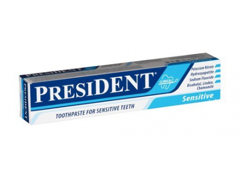 PresiDENT Sensitive,75ml Kontroliuojamas abrazyvumas RDA 25. Dantų pasta jautriems dantims ir dantenoms.Mažina dantų jautrumą, mažina reakciją į karštas/šaltas, rūgštus/saldus, ramina, turi priešuždegiminį poveikį, tvirtina dantų emalį. Ingredients: aqua, sorbitol 70%, hydrated silica, xylitol 70%, potassium nitrate, cellulose gum, sodium lauryl sulfate, tilia cordata, chamomilla recutita, propylene glycol, silica, sodium fluoride, sodium saccharin, bisabolol, methylparaben, propylparaben, titanium dioxide (C.I.77891). Sudėtyje yra natrio fluorido. Vaikams iki 6 metų naudokite nedideli kiekį dantų pastos ir valykite dantis prižiūrint suaugusiam asmeniui .Papildomai vartojant kitus produktus , kurių sudetyje yra fluorido ,pasikonsultuokite su odontologu. . Galiojimo laikas , serjos Nr. Ir sudėtis nurodyta ant pakuotės. Gamintojas Betafarma s.p.A. Italija. Platintojas UAB“ Balta Burė „ J.Žemgulio g. 46 ,Panevėžys 8 45 401935 e-mail : www.baltabure.lt