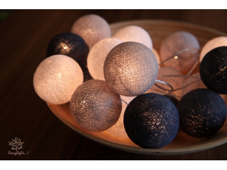 Rankų darbo medvilninės uogos Lietaus lašai Berry lights, 35 vnt Kamuoliukų spalvos kaip pavaizduota nuotraukose: Balta, akmens pilkumo, melsvai pilka. Rankų darbo medvilninės Berry lights uogos sukurs Jūsų namuose ypatingą ir jaukią atmosferą. Skleisdamos šiltą ir švelnią šviesą, lemputės vaiko kambaryje jaukiai atstos naktinę lempą. Taip pat tai – puiki šventės vietos puošmena ar dovana. Skleiskite namuose stebuklingą nuotaiką! Berry lights – kai norisi šiek tiek daugiau jaukios šviesos ir šilumos. Techniniai duomenys: 35 medvilniniai kamuoliukai 1 x 35 vnt. elektrinė girlianda (+ 2 papildomos lemputės pakeitimui) 35 uoginių lempučių išmatavimai: Nuo kištuko iki pirmosios lemputės 150 cm. Tarp lempučių yra 12 cm tarpas. Bendras girliandos ilgis 366 cm.