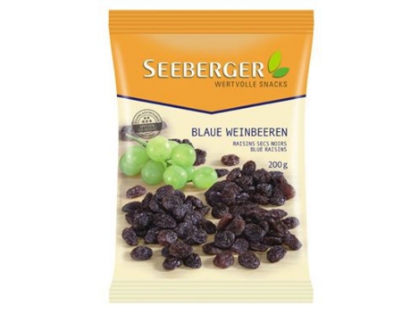 Razinos SEEBERGER, 200g Razinos.Pagaminta iš maždaug 900 g šviežių vynuogių. Ingredientai: razinos, augalinis aliejus. Supakuota saugioje aplinkoje. Nuolatos vygdoma kokybės kontrolė laboratorijose. Atidarius prašome laikyti vėsioje ir sausoje vietoje.Šios mėlynos razinos yra džiovintos geltonosios-žaliosios vynuogės iš Kalifornijos ar Pietų Afrikos.Maistinė vertė 100 g: energinė vertė 1301 kJ/305 kcal, baltymų 2,5 g, angliavandenių 68 g, riebalų 0,6 g.