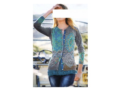 Mezgimas dizaineris prabanga gana patinka. Pjovimo kraštas, stiprus kombinatorinis modelis ypač gražus spausdinti ir spalvą. Paslėptos Snap mygtuką uždarymo, vienas dekoratyvinis mygtuką virš. Ilgis apie 60 cm. Aukštos kokybės 50% vilna / 50% akrilo.