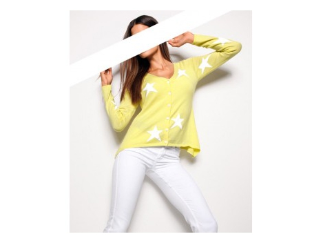 Highly Fashionable! Kapriziöser Designerstrick mit hinreißenden Details. Mit effektvollem Wasserfallausschnitt und mit Nieten und Strassbesatz im Vorderteil. Üb...