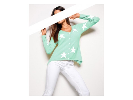 Švelniai - nepavyko ir kilnus. Iki šiol - gražus intarsjami mezgimo kontrastingos baltos žvaigždės. Ilgis mygtuką Kišenė su baltomis sagomis. Įsiliepsnojo, zipfeliger Hem. Ilgis apie 56 cm. Liemeniu forma. Prisiglausti Soft ploni megztiniai kokybės 55% medvilnė / 45% akrilo.