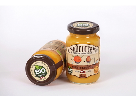 RŪDOLFS ekologiška moliūgų ir bulvių tyrelė, kūdikiams nuo 6 mėn., neto masė 190g EKOLOGIŠKA! Pagaminta Latvijoje naudojant ekologinių ūkių ingredientus. Skirta vaikams nuo 6 mėnesių.Tyrelė sterilizuota, sudėtyje nėra glitimo, pieno baltymų, kristalinio cukraus. Paruoštos valgyti. Prieš naudojimą gerai suplakite. Pradėkite nuo mažesnių porcijų ir palaipsniui didinkite. Sudedamosios dalys: ekologiškas moliūgas 38%, bulvės 38%, vanduo 24%.100g produkto energinė ir maistinė vertė: 28 kJ/119 kcal, baltymų – 0,6 g, angliavandenių – 6,2 g, iš kurių cukrų – 5,6 g, riebalų – 0,1 g, iš kurių sočiųjų riebalų rūgščių – 0 g, natrio - 0 g. Laikymas: prieš atidarant laikykite kambario temperatūroje, po atidarymo - laikyti šaldytuve, ir suvartoti per 48 val. Geriausia iki pabaigos: žr. ant dangtelio.