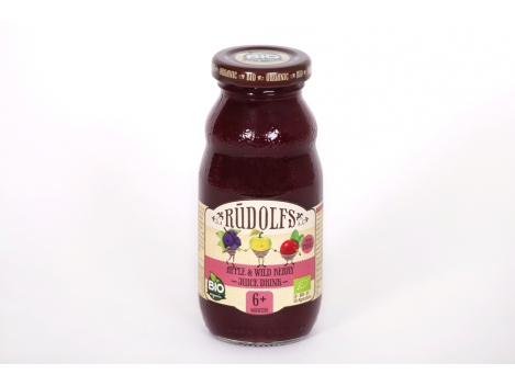 RŪDOLFS ekologiškos OBUOLIŲ, MĖLYNIŲ IR BRUKNIŲ sultys, kūdikiams nuo 6 mėn., neto masė 190ml
