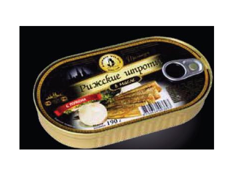 "RYGOS" šprotai aliejuje su česnaku, 190g Sudėtis: rūkyta žuvis(70%), augalinis aliejus(29%),valgomoji druska, česnakas.