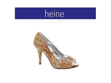 Ganz feminin inszenierter Designer-Style. Aufregend elegante Peep-Toe-Pumps mit temperamentvoller Reptilprägung und glamourösen Metallic-Effekten. Obermaterial aus geprägtem Kalbleder. Abgefüttert, Leder-Innensohle, abriebfeste Laufsohle mit ca. 1,5 cm hohem, innenliegendem Plateau. Schlanker, bezogener Absatz, Höhe ca. 10 cm, inkl. Plateau. Enthält nichttextile Teile tierischen Ursprungs.