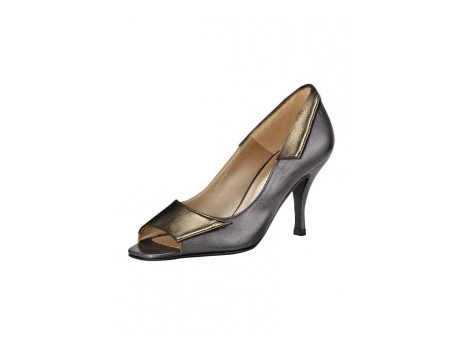 Reprodukcijos Kibirkščiuojantis tauriųjų kūrimas su couture pobūdžio. Populiari tendencija modelis elegantiškas, metalo spalva combo. Viršutinė pagamintas iš smulkių veršiuko oda. Aptaisytos, odos vidpadžio, lankstus padas. Susiję, plonas kulnas, aukštis apie 8,5 cm. Sudėtyje yra ne tekstilės dalių gyvūninės kilmės produktų.