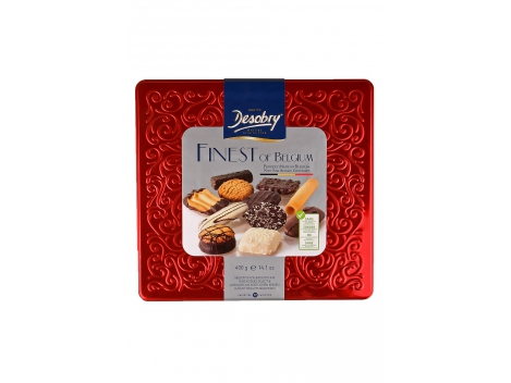 SAUSAINIŲ RINKINYS FINEST OF BELGIUM Desobry, 400g DESOBRY – aukščiausios kokybės belgiški sausainiai su tikru belgišku šokoladu. Pasaulinio pripažinimo sulaukę DESOBRY sausainiai gaminami nuo 1947 m., o dabar juos jau galite atrasti ir Assorti.lt!Kiekvienas sausainėlis – delikatus, skanus ir estetiškas konditerinis šedevras. Gamybai naudojami tik natūralūs ingredientai ir jokių konservantų!Rinkitės iš įvairiausių rūšių sausainių rinkinių, kurie taps ypatinga dovana tikram gurmanui-smaližiui. Sudedamosios dalys: KVIETINIAI miltai, tamsus šokoladas 17,7% (cukrus, kakavos masė, kakavos sviestas, bevandeniai PIENO riebalai, emulsiklis: SOJOS lecitinas, natūralios vanilės skonis), cukrus, pieno šokoladas 13,4% (cukrus, kakavos sviestas, nenugriebto PIENO milteliai, kakavos masė, laktozė (PIENAS), emulsiklis: SOJOS lecitinas), aliejai ir augalinia riebalai (palmių, rapsų, kopros, palmių sėklų branduolių), baltas šokoladas 7,3% (cukrus, kakavos sviestas, nenugriebto PIENO milteliai, emulsiklis: SOJOS lecitinas, natūralus vanilės skonis), baltas įdaras (augaliniai riebalai (palmių, saulėgrąžų, rapsų), cukrus, nugriebto PIENO multeliai, laktozė (PIENAS), emulsiklis: SOJOS lecitinas), invertuotas cukraus sirupas, švieži KIAUŠINIAI, SOJOS pupelių miltai, sviestas (PIENAS), kokosai, sumažinto riebumo kakavos milteliai, KIAUŠINIŲ baltymai, druska, dekstrozė, kildinimo priedai (soda, amonio karbonatas, difosfatas), nenugriebto PIENO milteliai, KVIEČIŲ krakmolas, natūralūs kvapai, natūralūs kavos milteliai (emulsiklis: SOJOS lecitinas), ŽEMĖS RIEŠUTAI, emulsiklis (SOJOS lecitinas), cinamonas, natūralus vanilės ekstraktas. Juodasis šokoladas: min. 46 % kakavos. Pieno šokoladas: min. 31 % kakavos. Mažo riebumo kakavos milteliai: kakavos sviestas 10%. GALI BŪTI RIEŠUTŲ PĖDSAKŲ. Laikyti vėsioje, sausoje vietoje.Galima aptikti žemės riešutų. Maistinė vertė 100g: energinė vertė 2189kJ/523kcal, riebalų 27,4g, iš kurių riebalų rūgščių 16,2g, anglavandenių 62,2g, iš kurių cukraus 40,4 g, baltymų 2,5.