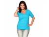 Žavingas moteriškas marškinėliai stiprios spalvos ir su dekoratyviniu mazgas pažvelgti į kairę. Giliai V-iškirpte ir trumpomis rankovėmis. Didžiosios duetas - v...