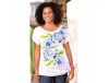 Feminines Basic mit süßen Details. Doppelt gelegte, offene Kanten um den V-Ausschnitt mit hübscher Raffung im vorderen Bereich. Über der Brust ein blumiger Aufd...