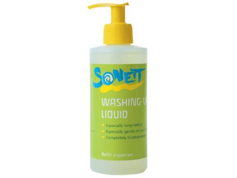 "SONETT" ekologiškas indų ploviklis, 300mlVokiška kokybė! Skirtas plauti indus rankomis.Naudojimas: užlašinkite SONETT indų ploviklio ant kempinėlės arba keletą lašų į vandenį, kuriame plausite indus. Ypatingos produkto savybės: SONETT indų ploviklis yra labai efektyvus ir ekonomiškas. Aktyviosios plaunančiosios medžiagos tausoja jūsų odą. Vandens kietumas visoms šioms savybėms įtakos neturi.300ml pakuotė su dozatoriumi, todėl patogi naudoti. Ši pakuotė pildoma, todėl ją pakanka įsigyti pirmą kartą perkant Sonett indų ploviklį. Po to ekonomiškiau ir ekologiškiau įsigyti 1L papildymo pakuotes.Sudėtis: 5-15% cukraus surfaktantai, 5-15% kokosų alkoholio sulfatas, 1-5% augalinis alkoholis (etanolis), <1% natūralus eterinis citrinžolės aliejus (jame yra citralio), dinamizuotas* vanduo iki 100%*dinamizuotas - specialiai apdorotas vanduo, kuris leidžiamas per sūkurius 12-oje stiklinių maišytuvų.