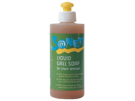 "SONETT" ekologiškas skystas tulžies muilas, 120mlVokiška kokybė! Ypatingai efektyvi priemonė šalinti dėmes atsiradusias nuo vaisių, kraujo, rašalo, tušinukų, žolės, purvo. Tinka visiems baltiems ir spalvotiems audiniams pagamintiems iš natūralių pluoštų ar audiniams maišytiems su sintetiniais pluoštais.Naudojimas: prieš plaunant prašome patikrinti spalvotų audinių spalvos patvarumą mažiau matomoje drabužio vietoje. Dėmių valymui: užpilkite nepraskiesto skysto tulžies muilo ant sauso audinio, tada palikite 10-15 minučių, kruopščiai išplaukite arba įdėkite skalbti į skalbimo mašiną. Esant reikalui pakartokite procedūrą. Skalbimo efektyvumo padidinimui: Skalbiant prie 30°- 60°C, pridėkite 20-30ml (5kg skalbinių) į pagrindinį skalbimo mašinos skyrių.Sudėtis: alyvų aliejaus muilas, rapsų aliejaus muilas, jaučių tulžis, cukraus surfaktantai, kokosų aliejaus alkoholio sulfatas, apelsinų žievelių aliejus, karčiavaisių citrinmedžių eterinis aliejus (sudėtyje yra limoneno ir linaliolio), balzaminiai ingredientai (iš laukinių augalų).
