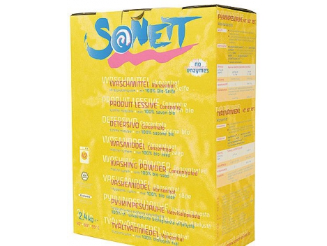 "SONETT" ekologiški skalbimo milteliai, 2,4kgVokiška kokybė! Ekologiški skalbimo milteliai Sonett tinka visiems baltiems ir spalvotiems audiniams pagamintiems iš natūralių pluoštų (medvilnės, lino ir kanapių) ar maišytų su sintetiniais audiniais. Skalbti 40-95°C vandenyje. Netinka vilnai ir šilkui. Jų skalbimui naudokite SONETT skalbimo skystį šilkui ir vilnai. 2 kg Sonett skalbimo miltelių užtenka išskalbti 138 kg sausų skalbinių.Dozavimas: nurodytas lentelėje pagal vandens kietumo ir skalbinių nešvarumo laipsnius. 4,5kg skalbinių - reikia 90ml (58g) miltelių. Vidutinio kietumo ir kietame vandenyje naudokite Sonett vandens minkštiklį.- Pagaminti iš 100% natūralios, ekologiškos augalinės žaliavos- Sudėtyje nėra naftos produktų, chloro, amoniako, optinių baliklių, sintetinių kvapų, dažų ir konservantų- Sudėtyje nėra fermentų- Sudėtyje nėra GMO produktų- Ekonomiški, koncentruoti produktai- Visiškai saugūs tiek žmogui, tiek gyvūnams- Neteršia gamtos, visiškai suyra gamtoje, o pakuotės lengvai perdirbamos- Produktai sertifikuoti Ecocontrol ir Ecogarantie kaip ekologiškos skalbimo ir valymo priemonėsSudėtis: >30% augalinis muilas, 15-30% molio mineralai ir silikatai, 5-15% soda,5-15% zeolitai; 1-5% riebiųjų r. alkoholio sulfatai, <1% balzaminiai laukinių augalų priedai.