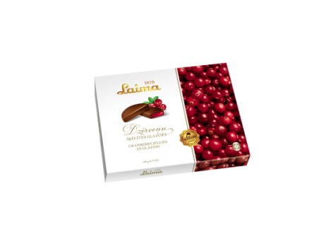 SPANGUOLIŲ SKILTELĖS ŠOKOLADE, 190gSudedamosios dalys: cukrus, gliukozės sirupas, vanduo, iš dalies sukietinti riebalai, liesos kakavos milteliai, rūgštingumą reguliuojančios medžiagos (citrinų rūgštis, natrio citratas), standiklis agaras, spanguolių sulčių koncentratas 1,0%, kvapioji medžiaga, emulsikliai (amonio fosfatidai, sorbitano tristeratas, sojų lecitinas).Sudėtyje gali būti: pieno, žemės ir kitų riešutų pėdsakų.Maistinė vertė 100g: energinė vertė 1521kJ/360kcal, riebalų 6,7, iš jų riebalų rūgščių 4,3g, angliavandenių 73,7g, iš jų cukraus 63,2g, baltymų 1,1g, duskos0,1g.
