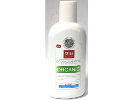 "SPLAT SPECIAL Organic" burnos skalavimo skystis, 340mlGražiausiai šypsenai! Sudėtyje nėra fluorido, alkoholio, triklosano, chlorheksidino.Stiprinančio dantis skalavimo skystyje yra alijošiaus gelio ir arbatmedžio aliejaus, kurie rūpinasi dantenų sveikata, veikia priešuždegimiškai ir apsaugo nuo bakterijų visą dieną. Sudėtyje esantis organinis kalcis, kuris išgaunamas iš kiaušinio lukšto, stiprina dantų emalį ir apsaugo n uo karieso. Rekomenduojama naudoti nėščiosioms. Vaikams iki 6 m. naudokite nedidelį kiekį, stebėkite, kad nenurytų. Jeigu vartojami produktai, kurių sudėtyje yra fluorido, pasitarkite su odontologu arba savo gydytoju. Naudojimas: Skalaukite burną po kiekvieno valgio ar dantų valymo. Įpilkite šio skysčio į kamštelį, neskieskite. Skalauti burną apie 1 minutę, išspjauti. Nenuryti.