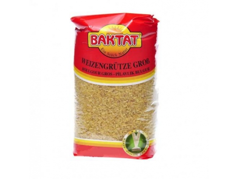 STAMBIOS kviečių kruopos bulgur, Baktat, 500 g Bulgur yra iš kviečių grūdų pagamintos kruopos, labai populiarios Šiaurės Afrikoje, Artimuosiuose Rytuose ir Vidurio Azijoje. Kruopos ruošiamos verdant kviečių grūdus vandenyje ir vėliau juos džiovinant. Tokiu būdu kviečio grūdo vidus tampa stiklo kietumo! Po to kviečiai sudrėkinami, kad suminkštėtų sėlenys - išorinis grūdo sluoksnis. Grūdai tuomet malami taip, kad atsiskirtų sėlenys ir grūdo gemalas, o grūdo endosperma subyrėtų į stambokas kruopas. Gautas rezultatas yra maistinga kviečių forma, kuri gali būti saugoma labai ilgai, o išverda palyginus labai greitai - bulgur.Stambios bulgur kruopos yra naudojamos kaip ryžiai ar kuskusas: virtos vandenyje ar garuose tinka bet kokiam skystam patiekalui, plovams, troškiniams ar salotoms, kepinių įdarams, o smulkios bulgur kruopos tinka ruošti vegetariniams maltinukams, kotletams, košėms ar saldiems pudingams. Paruoštos bulgur kruopos yra riešutų skonio, ilgiau kramtomos, pagal maistingumą turtingesnės už ryžius ar kuskusą, turi daugiau maistinių skaidulų, baltymų, vitaminų ir mineralų: sudėtyje yra daug kalcio, fosforo, geležies. Paruošimas: 1 dalis bulgur kruopų ir 2 dalys vandens. Užvirinama ir virti apie 15 - 20 minučių. Sudėtis: kietieji kviečiai.Alergenas: glitimas.