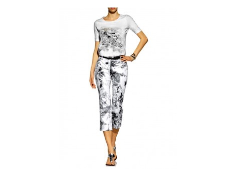 Galutinis vasaros išvaizdą. Nuostabiai patogus trikotažas kelnės su madingas išvaizdą. "Eyecatcker įdomu yra tai, per spausdinimo Palm sėkmingai juodos ir balto...