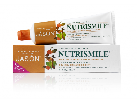 STIPRINANTI DANTŲ EMALĮ dantų pasta su apelsinų, cinamonų ir mėtų aliejais Jason Nutrismile, 119 g