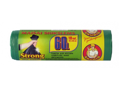 Stiprūs maišai šiukšlėms 60L-10vnt.Skubis Strong