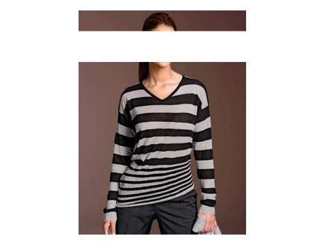 Gražus ponios palaidinė su 3/4 ilgio rankovėmis. V-iškirpte, papuoštas su įspūdingas raukiniai, kurie pabrėžti moteriškas savybes. Priekinė asimetriškas siūlės....