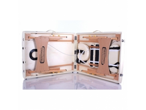 Sulankstomas masažo stalas Restpro Classic 2/Blue - sulankstomas profesionalus masažinis gultas, pagamintas iš vokiško buko medienos, yra vienas iš lengviausių sudedamųjų stalų masažui, todėl idealiai tiks procedūras atlikinėti namų bei ofisų sąlygomis. Stalo karkasui ir kojoms panaudota viena kiečiausių medienų - bukas - kas leidžia šiam modeliui būti visada stabiliam ir tvirtam. Stalas apvilktas aukštos kokybės viniline danga, pamušalui panaudota 4 cm storio paminkštinimo medžiaga. Kojų aukščio reguliavimas leidžia stalą pritaikyti prie kiekvieno masažuotojo ūgio, kas leidžia masažo seanso metu pasiekti optimaliausius rezultatus. Dar didesniam patogumui stalo komplektacijoje yra vieta galvai, reguliuojama pagal aukštį bei nuokrypio kampą, ir taip pat vietos rankų prilaikymui - tiek priegalvyje, tiek šonuose. Dėka sulankstomos konstrukcijos, stalas lengvai transformuojasi į pernešimui tinkantį lagaminėlį. Šis modelis išsiskiria iš kitų estetišku ir patraukliu vaizdu, panaudotų medžiagų suderinimu ir patogumu klientui. Restpro stalas skirtas ne tik atpalaidavimui nugaros, pilvo ar kojų raumenims, bet ir visoms masažo, adatų terapijos, tatuiruočių bei kosmetologinėms procedūroms. Lengvai sulankstomas, medžio rėmas;2-ių dalių;Ilgis: 192 cm (su galvūgaliu - 230 cm);Plotis: 70 cm (su rankų laikikliais - 95 cm);Reguliuojamas aukštis nuo 63 cm iki 84 cm;Maksimalus svoris 250 kg;Nuimamas galvūgalis su atvira vieta veidui;Nuimami šoniniai rankų laikikliai;Apdaila: itin aukštos kokybės vinilas;Rankinė-užklotas stalo pernešimui ir saugojimui;Sulankstyto stalo gabaritai: 100,0 x 70,0 x 20,0 cm;Spalva: mėlyna;Svoris - 14 kg.