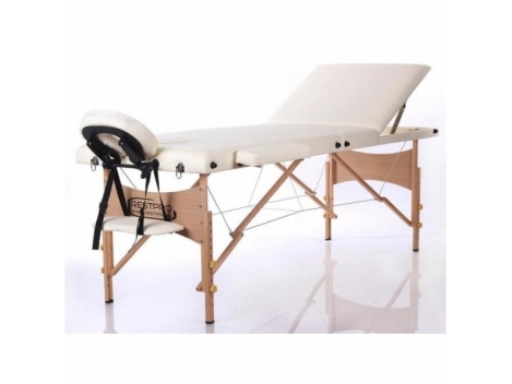 Sulankstomas masažo stalas Restpro Classic 3/Cream - sulankstomas profesionalus masažinis gultas, pagamintas iš vokiško buko medienos, yra vienas iš lengviausių sudedamųjų stalų masažui, todėl idealiai tiks procedūras atlikinėti namų bei ofisų sąlygomis. Stalo karkasui ir kojoms panaudota viena kiečiausių medienų - bukas - kas leidžia šiam modeliui būti visada stabiliam ir tvirtam. Stalas apvilktas aukštos kokybės viniline danga, pamušalui panaudota 4 cm storio paminkštinimo medžiaga. Kojų aukščio reguliavimas leidžia stalą pritaikyti prie kiekvieno masažuotojo ūgio, kas leidžia masažo seanso metu pasiekti optimaliausius rezultatus. Dar didesniam patogumui stalo komplektacijoje yra vieta galvai, reguliuojama pagal aukštį bei nuokrypio kampą, ir taip pat vietos rankų prilaikymui - tiek priegalvyje, tiek šonuose. Dėka sulankstomos konstrukcijos, stalas lengvai transformuojasi į pernešimui tinkantį lagaminėlį. Šis modelis išsiskiria iš kitų estetišku ir patraukliu vaizdu, panaudotų medžiagų suderinimu ir patogumu klientui. Restpro stalas skirtas ne tik atpalaidavimui nugaros, pilvo ar kojų raumenims, bet ir visoms masažo, adatų terapijos, tatuiruočių bei kosmetologinėms procedūroms. Lengvai sulankstomas, medžio rėmas;3-ių dalių;Ilgis: 192 cm (su galvūgaliu - 230 cm);Plotis: 70 cm (su rankų laikikliais - 95 cm);Reguliuojamas aukštis nuo 63 cm iki 84 cm;Maksimalus svoris 250 kg;Nuimamas galvūgalis su atvira vieta veidui;Nuimami šoniniai rankų laikikliai;Apdaila: itin aukštos kokybės vinilas;Rankinė-užklotas stalo pernešimui ir saugojimui;Sulankstyto stalo gabaritai: 100,0 x 70,0 x 20,0 cm;Spalva: kreminė;Svoris - 18 kg.
