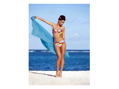 Giedra modelis, kuris daro ryškiaspalvėmis tropinių gėlių modelius mados pojūtis. Į viršų su šoninėmis gatherable Underwire puodeliai. Reguliuojami dirželiai, u...