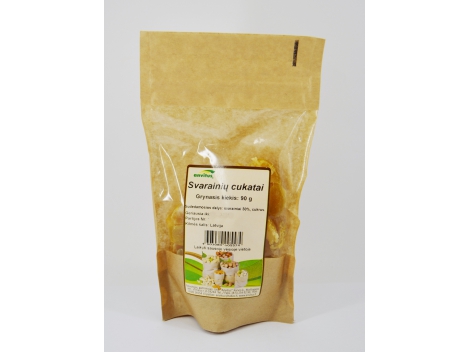 MOLIŪGŲ CUKATAI Anvitus, 90g Sudedamosios dalys: moliūgai 50%, cukrus.