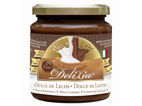 ŠVELNI IR SALDI PIENIŠKA KARAMELĖ SU KAKAVA Delixia, 330g Švelniai tirpstanti, su vertingais pieno komponentais Delixia® tobulai tinka pusryčiams kaip duonos užtepėlė , taip pat labai gardu ant vaflių, vaisių (melionų, bananų, obuolių), jogurto, ledų, bandelių, blynų. Žinovai mėgaujasi šia puikia karamele, paprastai – tiesiog tiesiai iš indelio. Šaukštelis karamelės karštam kavos gėrimui suteikia ypatingą skonį. Pieno karamelė Delixia® yra pagaminta iš pieno be laktozės, todėl lengvai virškinama. Tai gera žinia, jei reikalinga dieta be gliutenų. Delixia® lyginant su riešutų kakavos kremais turi tik 6% riebalų, bet vis tiek suteikia daug energijos, todėl ši pieno karamelė yra ne tik puiki dovana sportininkams, draugams, šeimos nariams ar kolegoms, bet ir puikus pagalbininkas modernioje virtuvėje.Sudedamosios dalys: Pieno milteliai (76%), cukrus, gliukozės sirupas, kakava, rūgštingumą reguliuojanti medžiaga: kalcio hidroksidas, fermentas laktazė, natūrali vanilė. Alergenai: pieno milteliai. Sudėtyje nėra laktozės ir glitimo.