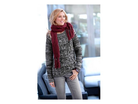 Ilgio Apie 82 cm Sudėtis: 60% akrilas, 20% vilna, 20% Viskozinis