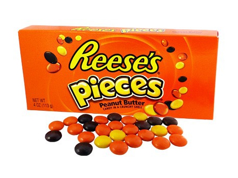 TRAŠKŪS ŽEMĖS RIEŠUTŲ SALDAINIAI Reese's, 113gSudedamosios dalys: cukrus, žemės riešutai iš dalies pašalintais riebalais, iš dalies hidrintas augalinis aliejus (palmių branduolių ir sojos pupelių aliejus), kukurūzų sirupas, dekstrozė, sudėtyje mažiau kaip 2%: dirbtiniai dažikliai (geltona 5, raudona 40, geltona 6, melyna 1), druska, sakų glazūra, sojos lecitinas, modifikuotas kukurūzų krakmolas, karnaubo vaškas, vanilinas, dirbtinis skonis, pienas.Maistinė vertė porcijoje: energinė vertė 200kcal; riebalų 12g, iš kurių sočiųjų riebalų rūgščių 8g; trans riebalų 0g, cholesterolio 0mg, natrio 55mg, angliavandenių 25g, maistinių skaidulų 2g, iš jų cukrų 21g; baltymų 5g.