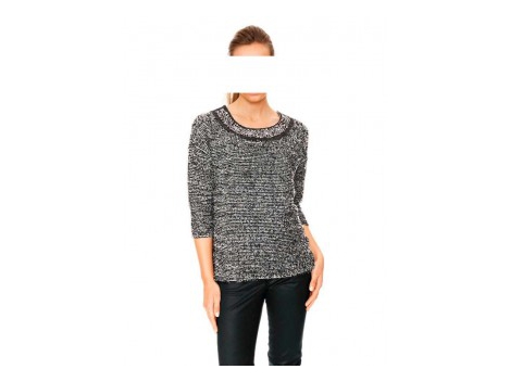 Heine megztinis su dekoratyvinėmis kniedėmis. Priekis suapvalintas, šiek tiek trumpesnis nei nugaroje.Ilgis apie 68 cm. Sudėtis: 50% medvilnė, 50% viskozė.